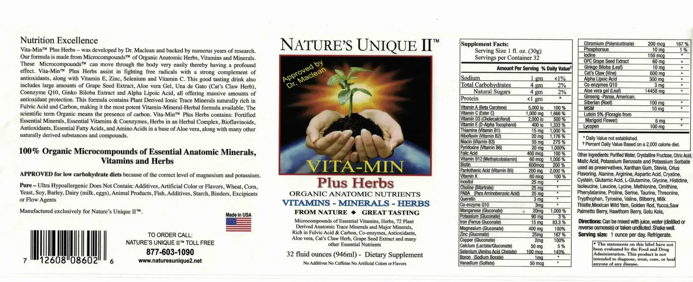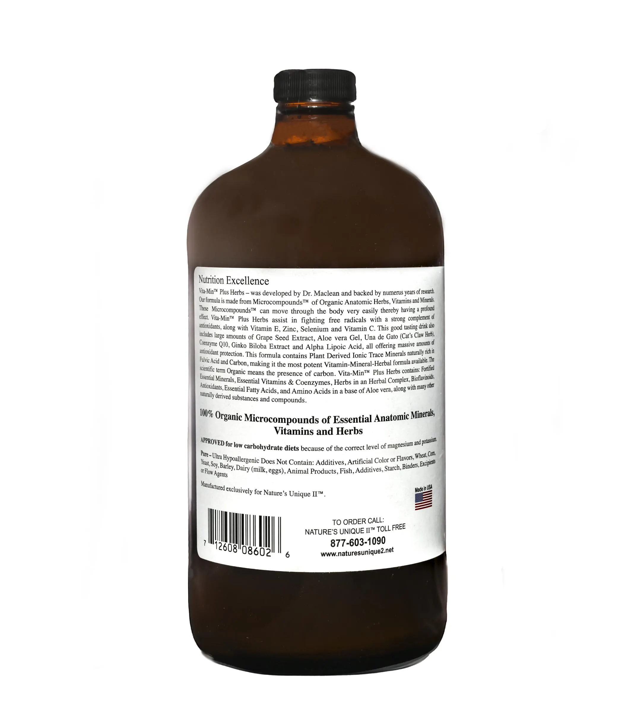 - VITA-MIN™ Plus Herbs, an ultra-concentrated super supplement made from micro compounds of 100% organic anatomic herbs, vitamins and minerals that we need on a daily basis. These micro compounds can move through the body easily, thereby having a profound effect. VITA-MIN™ Plus Herbs surpasses any liquid vitamin supplement in the marketplace.